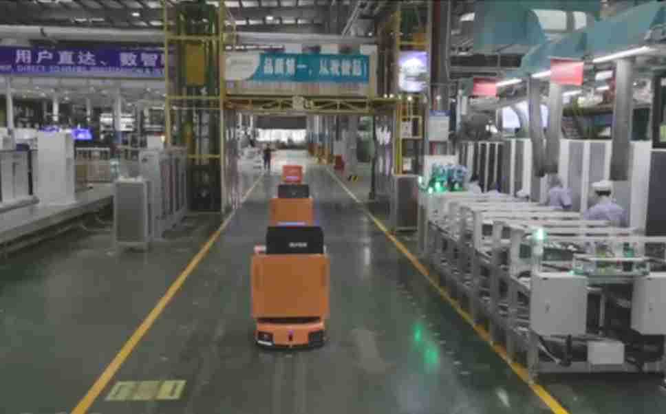 为车载冰箱物流配送打造的智能解决方案,,包含产中物流通过潜伏举升AMR搬运至线边,,,产后成品物流智能仓储,,流程包含产中物流智能齐套入库,,线边安灯叫料AMR智能配送至线边,,,成品入库、、、、出库,,,通过无人堆高车机器人,,智能仓储管理替代人工作业管理,,实现更高存储、、、、更高效率、、、更具柔性化的解决方案。。。